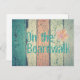 Weathered wood reminiscent of a beach boardwalk in beachy colors of sand, teal and coral. Perfect for an oceanfront cottage or beach house. Embellished with a coral pink hibiscus flower.