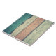 Weathered wood reminiscent of a beach boardwalk in beachy colors of sand, teal and coral. Perfect for an oceanfront cottage or beach house.