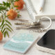 This acrylic keychain in the soft colors of sea and sand allows you to easily add your own name and text using the provided template. The simple palm trees image on a distressed, watercolor background is highlighted by a wave accent in aqua and white. Search ID623 to see coordinating seaside elements and additional products with this design.