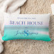 Beautiful beach house pillow showcasing a tropical turquoise blue sea / ocean. Interior design for eternal vacation / holiday feeling.