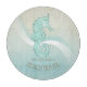 This glass cutting board in the soft colors of sea and sand allows you to easily add your own name and text using the provided template. The simple seahorse image on a distressed, watercolor background is highlighted by a wave accent in aqua and white. Search ID623 to see coordinating seaside elements and additional products with this design.