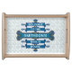 Beach House Sign Blue Scallop Swirls Custom Name Serving Tray