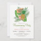 Tropical summer Hawaiian Luau housewarming party celebration invitation. Invite features beach themed pineapple and palm trees.