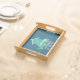 This is a well made, sturdy wooden tray with a flawless black finish and lovely map on the tray surface. It is both vintage & modern at the same time. Looks exactly like the photo; does not disappoint. So nice to find something of quality individually made and not the mass-produced 'shabby chic' merchandise seen in stores. I am so pleased to be able to give this to my college-age niece for her birthday. This can be used as a tray to hold jewelry or toiletries, or hung on the wall as art. The map surface is sealed (it is slightly shiny) so would be moisture resistant. It is well worth the asking price but I was able to apply a sale code as well. Very happy with my purchase. Map is crisp & clear and sealed with a water-resitant finish.