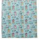 Beach themed patterned shower curtain featuring a playful seaside pattern featuring multicolored striped beach huts, sailboats, bunting, and gulls. Blue and white background inspired by the sea. Design copyright © Lisa Marie Robinson All rights reserved. It is illegal to use or duplicate this, or any of our images, without written permission.