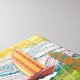 Attractive beach huts of mixed media artwork along with colorful sailboats sailing under deco patterned sails, making this a most colorful exhibit to be admired.