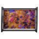 The original, abstract artwork by ZoeSPEAK on this Serving Tray was created from an original photograph taken at the beach. The photo is a closeup of little shells and rocks washed up in the wet sand. The warm yellow ochre colors, with electric blues, touches of black and a splash of hot pink, make a stylish statement.