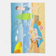 Every summer day is a party for kids on the beach. The girl is sunbathing and enjoying her refreshment. The boy is holding a surfboard and ready to go catch some waves! The beach is the place to go and have fun with friends, maybe celebrate their birthday too! Don't forget the towel, the hat, and the sun protector! This towel will look nice in your beach house kitchen. Your kids will love it!
