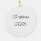 Lightweight, smooth, pure white ornament with nice sheen. Perfect size to be seen from across the room ... and to attract closer inspection! Price was great for ordering enough for the whole family! Clear, bold black design just as requested. Matches the order exactly. Just so nice!