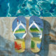 Stay in a beachy state of mind all the time with these personalized beach life flip flops, featuring a lighthouse and beach chairs.