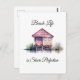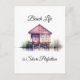 Keep in touch with this beachy card with a beach house with tropical plants watercolor style, with the funny quote, "Beach life is shore perfection." Ai art. generativecontent