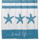 Beach life script teal starfish white rustic wood shower curtain