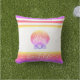 Beach life script yellow pink ombre seashell bold outdoor pillow
