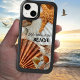 Phone case featuring a beach inspired design with shells and starfish and your own custom texts (optional).