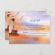 Elegant wedding RSVP invitation or enclosure card with a painting of a lighthouse at the beach with seagulls at sunset. This card matches several wedding and bridal invitations.