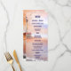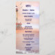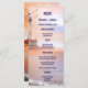 Nautical wedding menu card template with a beach theme featuring a painting of a lighthouse at the ocean with two seagulls at sunset. This menu card is perfect for a beach or destination wedding, a cruise wedding or a specialty restaurant in seafood.