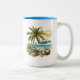Dive into relaxation with our stunning Large Two-Tone Ceramic Beach Mug, featuring a serene tropical beach scene that transports you straight to paradise.