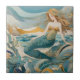 Beach Mermaid by the Sea Turquoise Gold Left side Ceramic Tile
