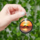 Beautiful dolphin beach sunset keychains with message text you can customize in this promotional keychain you can customize online. Designed with a sunset colored ocean, two dolphins jumping, and the ability to promote a product, service, or event in a budget friendly design you can get in bulk or one off printing.