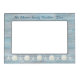 The perfect frame for your family summer vacation photo, this magnetic picture frame has a rustic wood background with a row of starfish and sand dollars at the bottom, and personalized text at the top.
