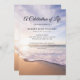 Funeral remembrance invitation featuring a heavenly beach photo invite celebration of life template that is easy to personalize.