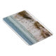 Photograph of a beach access showing ocean surf, beach and upper grassy area and path to beach.