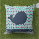 Beach Ocean Nautical Blue Whale Chevron Outdoor Pillow