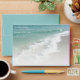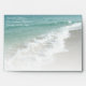 Ocean Shoreline Envelopes, beautiful ocean scene background for use with beach wedding invitations. Great envelope for your destination wedding, cruise wedding or beach wedding. Aqua turquoise water with white crashing waves and sand. Customize online with your info, then hand-write or print individual names on each envelope.