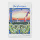 Sunset from the porch of a Victorian beach or lake house celebrates summer or retirement and welcomes guests on this garden flag which can be customized with any name or text.