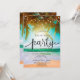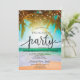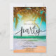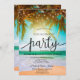 Beach,Palm,Sun,String Lights Script Engagement Invitation