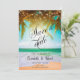 Beach with palms, sun, string lights, and script. Beautifully save the date that can be customized with your name.Select the "customize" button to change the font style,color and size.