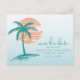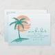 Save the date wedding postcards perfect or your beach wedding in Florida in a teal and peach sun and palm tree design. Add your wedding details to the front and backside of the postcard - mail to friends and family asking them to reserve your wedding date.