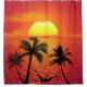 Transform your bathroom into a tranquil escape with this stunning shower curtain design, featuring a vivid tropical sunset scene. A glowing sun dips into the calm ocean, casting warm hues of red, orange, and gold across the sky and water. Silhouetted palm trees frame the composition, with a relaxed figure lounging in a hammock between two trunks, evoking a sense of serenity and island bliss. The rich colors and peaceful imagery create a soothing, vacation-like atmosphere—perfect for adding warmth and elegance to your daily routine.