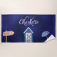 Beach party blue white monogram towel
