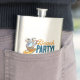 Keep the sand out of your favourite tipple at the beach party, with this premium flask; featuring an ice cool polar bear enjoying a cold drink and a cooling hand fan while riding a bright yellow surf board. Change the default "Beach Party!" text to your preferred caption. A chilled out design for the summer.