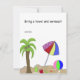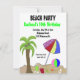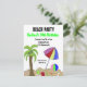 A fun beach party birthday invitation with a sandy beach, palm tree, beach umbrella and more. Customize with all your own party information as desired. Great for summer birthday parties.