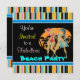 Use the personalize feature to the right of the beach party invitation demo if you love the font style, coloring and size to just change the demonstration information to your own personal details. If you want to add more text boxes, change the font color, sizing or style--- click on the orange "customize it" button below the beach party invitation demo to change things to suit your personal tastes.