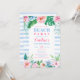 Beach Party Tropical Floral Blue Stripes Birthday Invitation