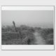 Little path leading to the beach in thick fog. Black and white photography.