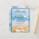 .: This photo design features beach themes and script typography. Perfect for your big day.