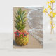 Tropical pineapple on beach sand with star sunglasses for friend's birthday.
