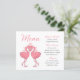 Feathers, flavor, and flamingos—this tropical wedding menu card brings the party to the plate. Featuring a cute pink flamingo couple forming a heart, it’s perfect for beach weddings, Hawaiian luaus, or outdoor summer celebrations filled with coastal charm. From love hearts to sunset vibes, this design adds a splash of sass and romance to every course.