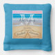 Add a touch of romance and personalization to your beach wedding with these custom cornhole bags, designed to make your outdoor celebration unforgettable. Each set features two beautifully drawn hearts in the sand, symbolizing the love and unity between the bride and groom. The front of both bags is personalized with the couple’s names, along with a stylish family monogram and last name, making these bags a perfect keepsake from your special day.