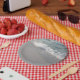 Plates featuring a photo of ocean waves crashing to the sandy shore.