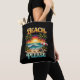 A vibrant tropical sunset scene with palm trees, rolling waves, and sandy shore vibes celebrating carefree beach life.