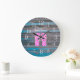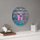 This unique beachy wall clock features pink flip flops adorned with darker pink hearts on a distressed teal blue and gray boardwalk background. The white clock numbers give this wall clock function as well as design! The phrase "Beach Please!" can be easily personalized to say whatever you'd like. If you need help with further customization, please don't hesitate to contact the designer.