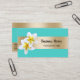 Elegant Plumeria Floral Beauty Salon Spa Turquoise & Gold Business Cards.