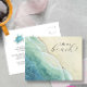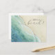 Capture the serene beauty of the seaside with this stunning watercolor postcard, featuring a picturesque ocean shoreline on a sandy beach painted in soothing shades of blue, turquoise, and beige. The unique artwork by Victoria Grigaliunas adds a personal touch of elegance and tranquility to every note you send. On the back, a charming watercolor sea turtle complements the coastal theme, enhancing the overall aesthetic of the card. Use the template fields to customize your message, ensuring that each card you send is both personal and memorable. Ideal for invitations to a summer beach party or a family reunion by the sea, this postcard brings a touch of the ocean’s calm to any festive occasion.