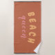 This funny and slightly retro looking towel can be customized in a number of ways. Text "BEACH queen" can easily be customized and repositioned, and font, size and color can be adjusted, too. There are black lines on each end of the towel, these can be removed. Finally, the fluffy background can be color adjusted by changing the base color of this product. Play around with your own ideas!