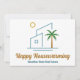 This cute tropical real estate company card features a modern blue beach house with a cool coastal palm tree and island sun. Customize these marketing cards with your agent and realty business name for home buying clients along the coast.